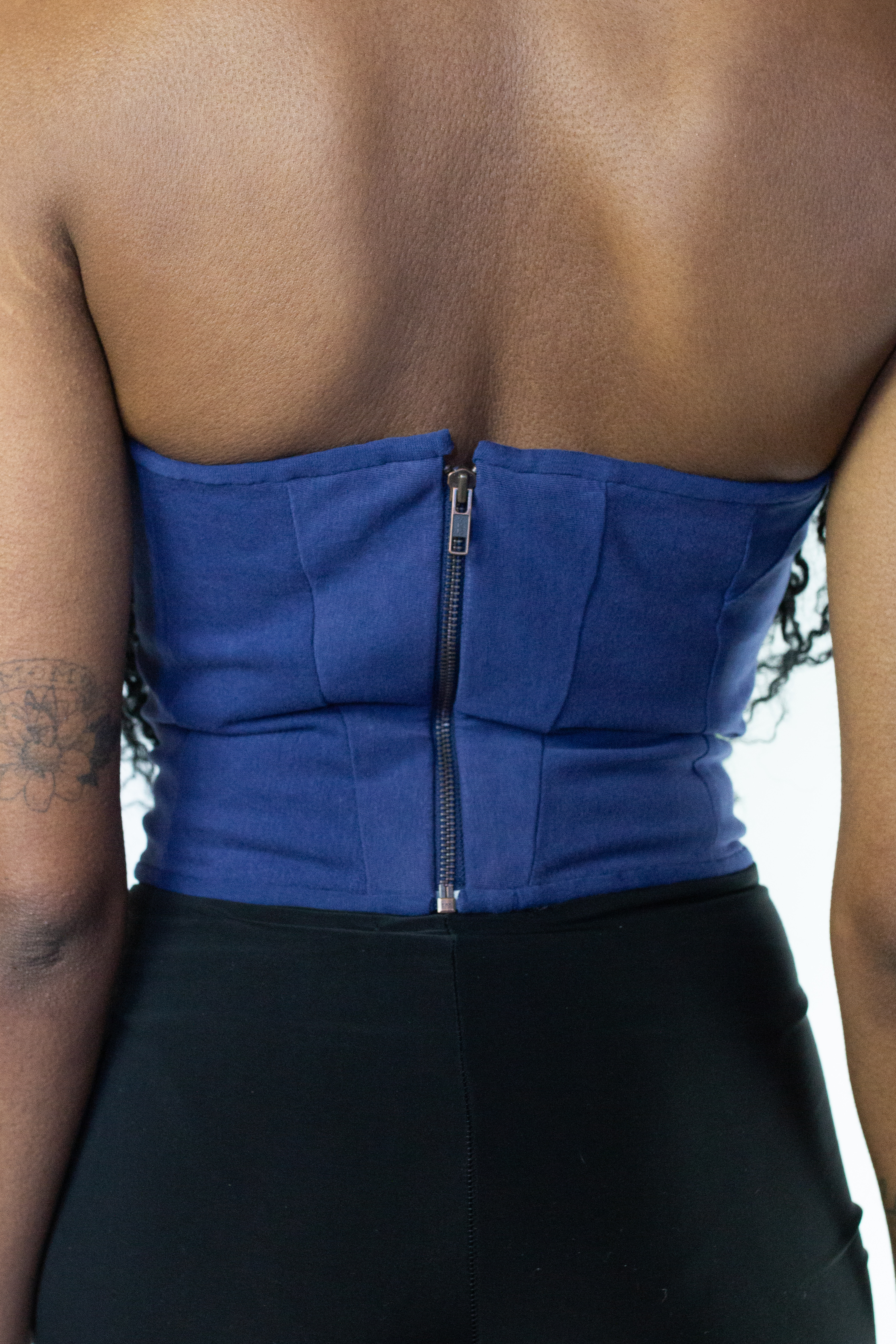 HAS RINGS ON INSIDE FOR STRAPS/ RIBBON WEAR. HOOK AND EYES AT BACK FOR EXTRA SECURITY